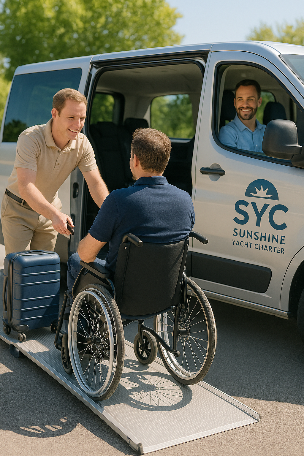 - Sunshine Yacht Charter bietet dir auf Wunsch einen rollstuhlgerechten Transfer vom Flughafen Tivat oder Podgorica zur Marina.
