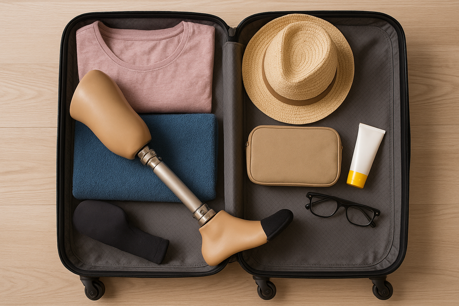 Beim Fliegen: Prothese nie im Aufgabegepäck transportieren – immer im Handgepäck oder am Körper.
