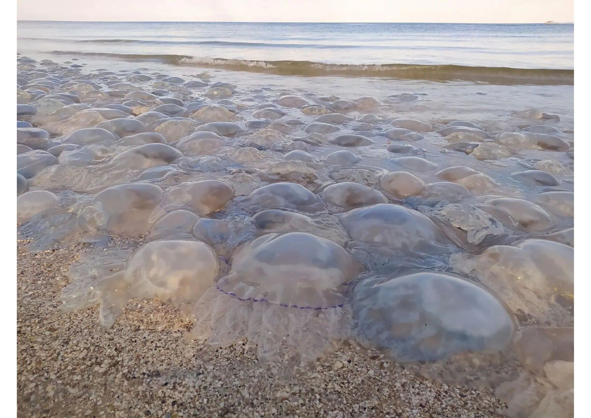 Ein massenhaftes Auftreten von Quallen kann nicht nur das Badevergnügen trüben, sondern auch den Strandspaziergang. Denn oft werden die Tiere bei bestimmten Strömungen in großer Zahl an den Strand angespült. Auch dort sollten giftige Exemplare nicht angefasst werden, da sie auch tot noch nesseln können.