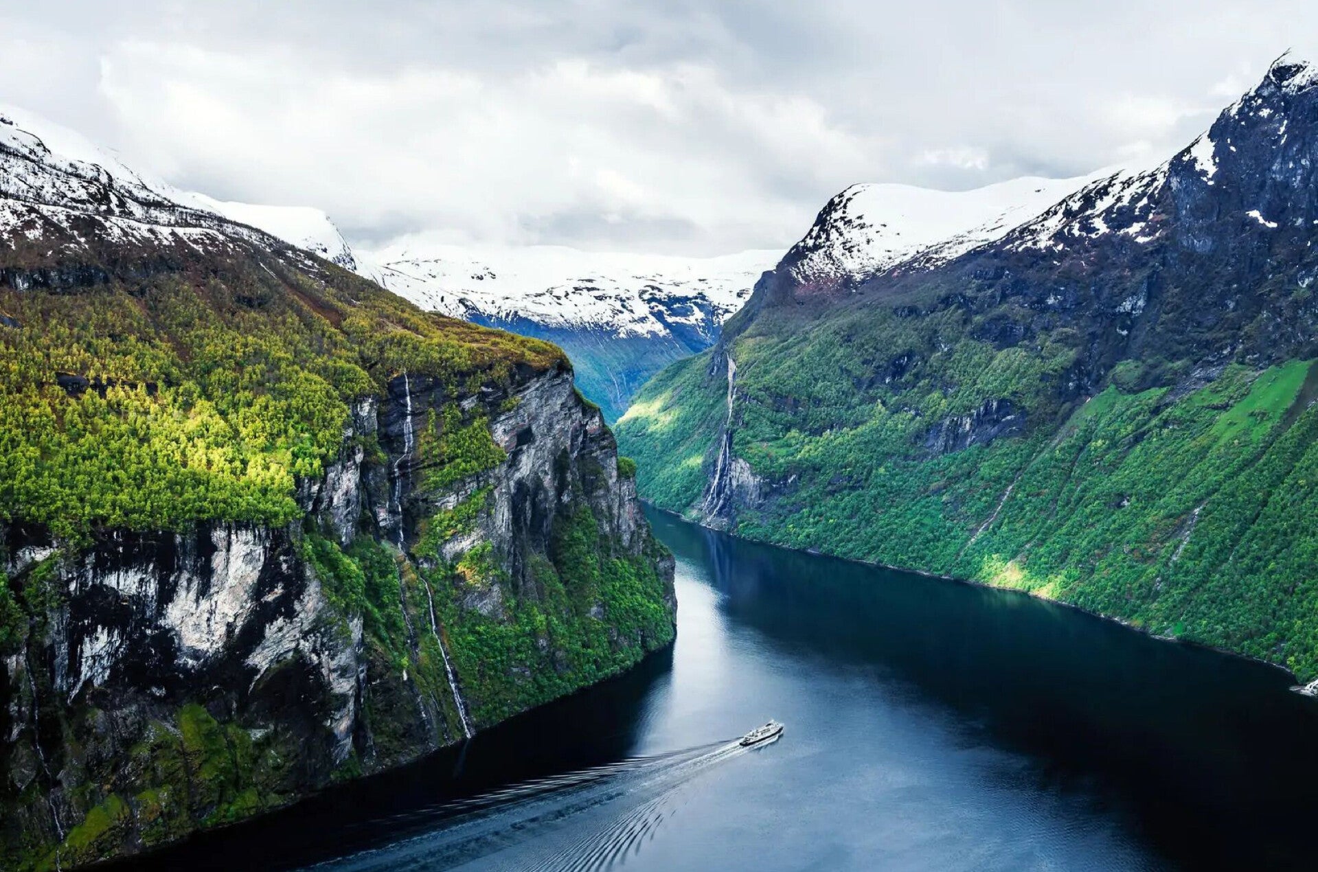 Der Geirangerfjord als UNESCO-Weltnaturerbe ist sommers wie winters, zu Land und vom Wasser aus ein Erlebnis: Bis zu 1.000 Meter ragen die fast senkrechten Felswände empor, die Gewässer sind an manchen Stellen bis zu 260 Meter tief. Flora und Fauna sind ebenso beeindruckend, darunter die Wasserfälle "Die sieben Schwestern", "Der Freier" und "Brautschleier".