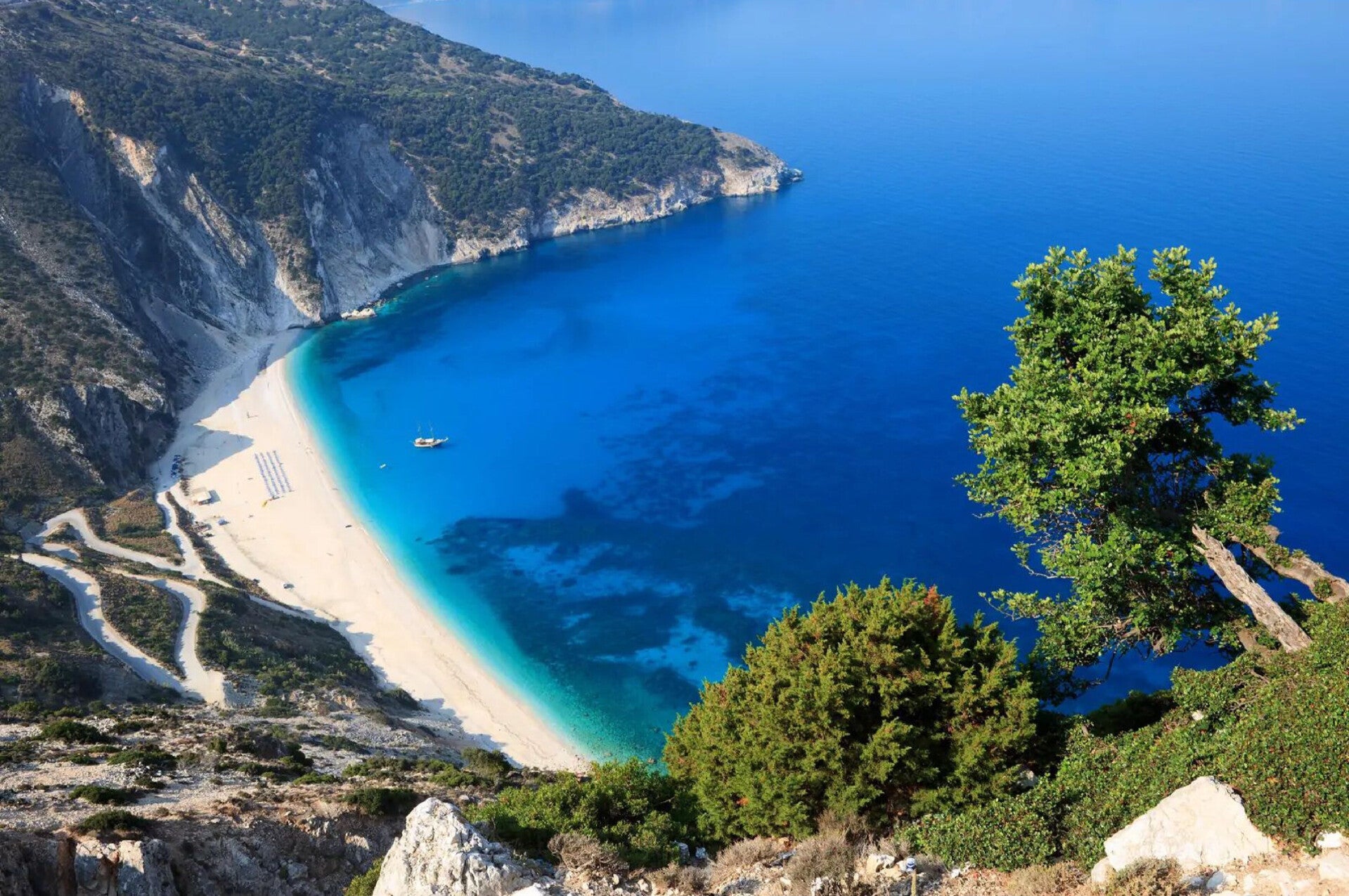 Myrtos ist das charakteristische Bild der griechischen Insel Kefalonia. Die unbebaute Naturkulisse bietet ideale Bedingungen für Erholung und Fotomotive, während der flach abfallende Strand sich perfekt für Familien eignet. Besonders am Mittag, wenn die Sonne das Wasser in faszinierenden Farben schimmern lässt, entfaltet der Strand seine ganze Pracht. Aufgrund der Beliebtheit empfiehlt sich ein früher Besuch, da Parkplätze begrenzt sind.